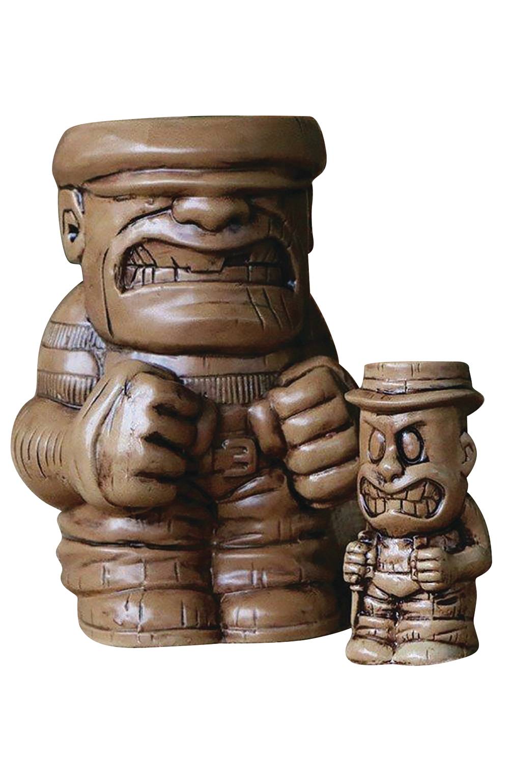 Are you a street wise butt kicker with a love of cracking undead skulls? Do you enjoy a nice rum based Polynesian inspired cocktail? Then boy do we have the mug for you! Jumping from the pages of Eric Powell’s award wining comic series, The Goon, comes the Goon Tiki Mug! Available in sepia or gun metal gray and comes with a Franky shot glass when your cocktail needs a little KNIFE TO THE EYE!
