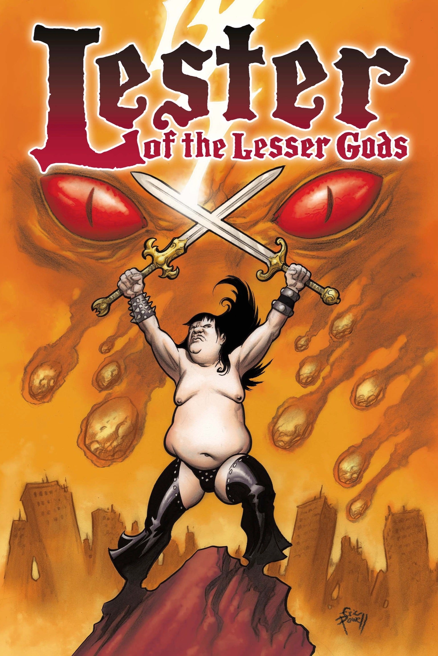 From Eric Powell (The Goon), Lucky Yates (Comedian and voice of Dr. Krieger from Archer), Mac Cushing (Spook House) and Eisner Award-winning artist Gideon Kendall (Megaghost) comes LESTER OF THE LESSER GODS! Lester has no friends and no life. That is until Satan unleashes the Apocalypse! No longer is he a 32-year-old, 300 pound LARPer who lives with his mother. A mother who constantly re-minds him of his lowly conception in a biker bar bathroom. But momma didn't get that gimpy hip from knocking boots with any old biker... t'was a GOD! And Satan shall suckle his knuckle! HUZZAH!